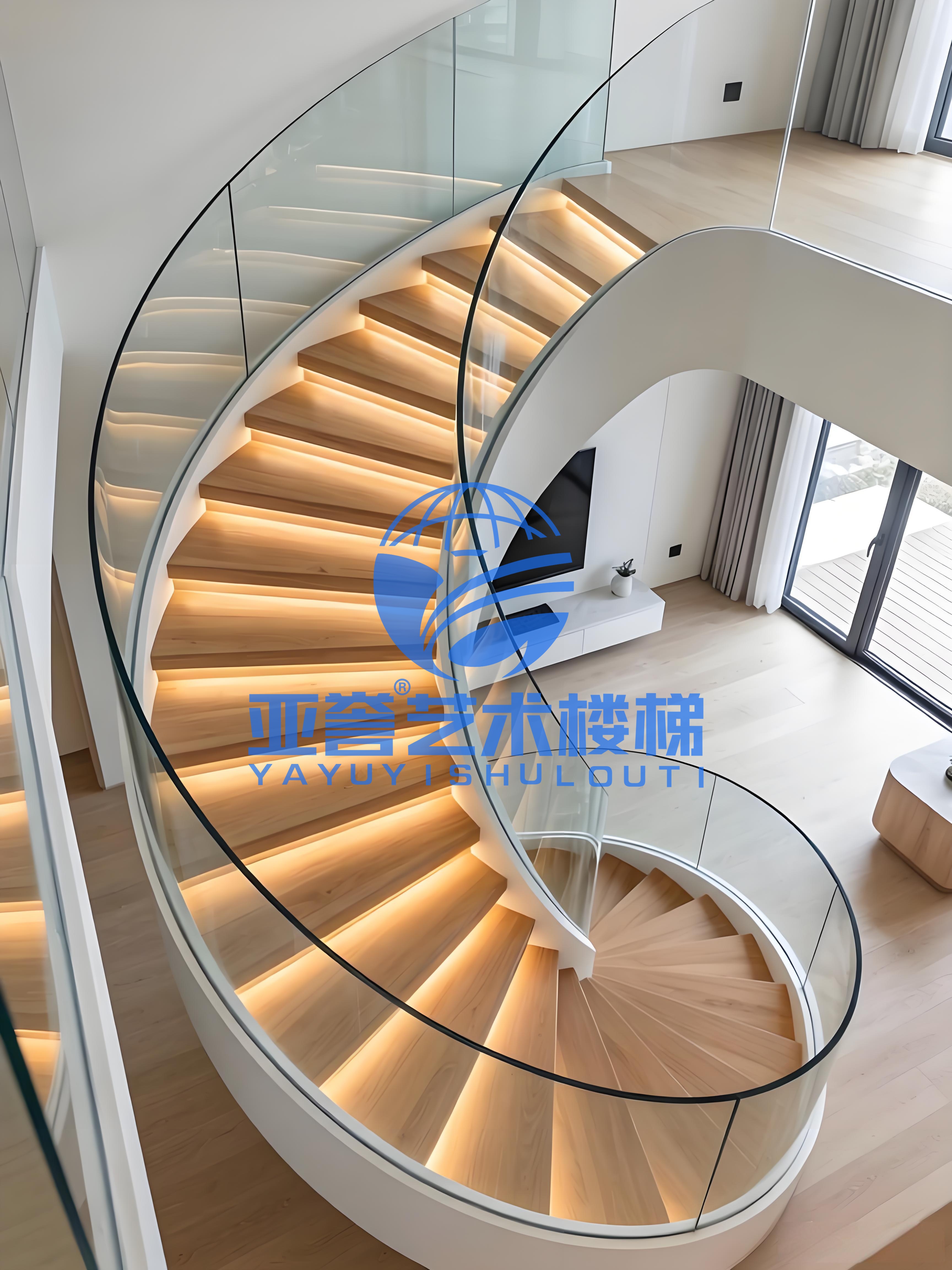 玻璃螺旋楼梯玻璃踏板多厚?武汉亚誉艺术楼梯钢旋转楼梯工厂