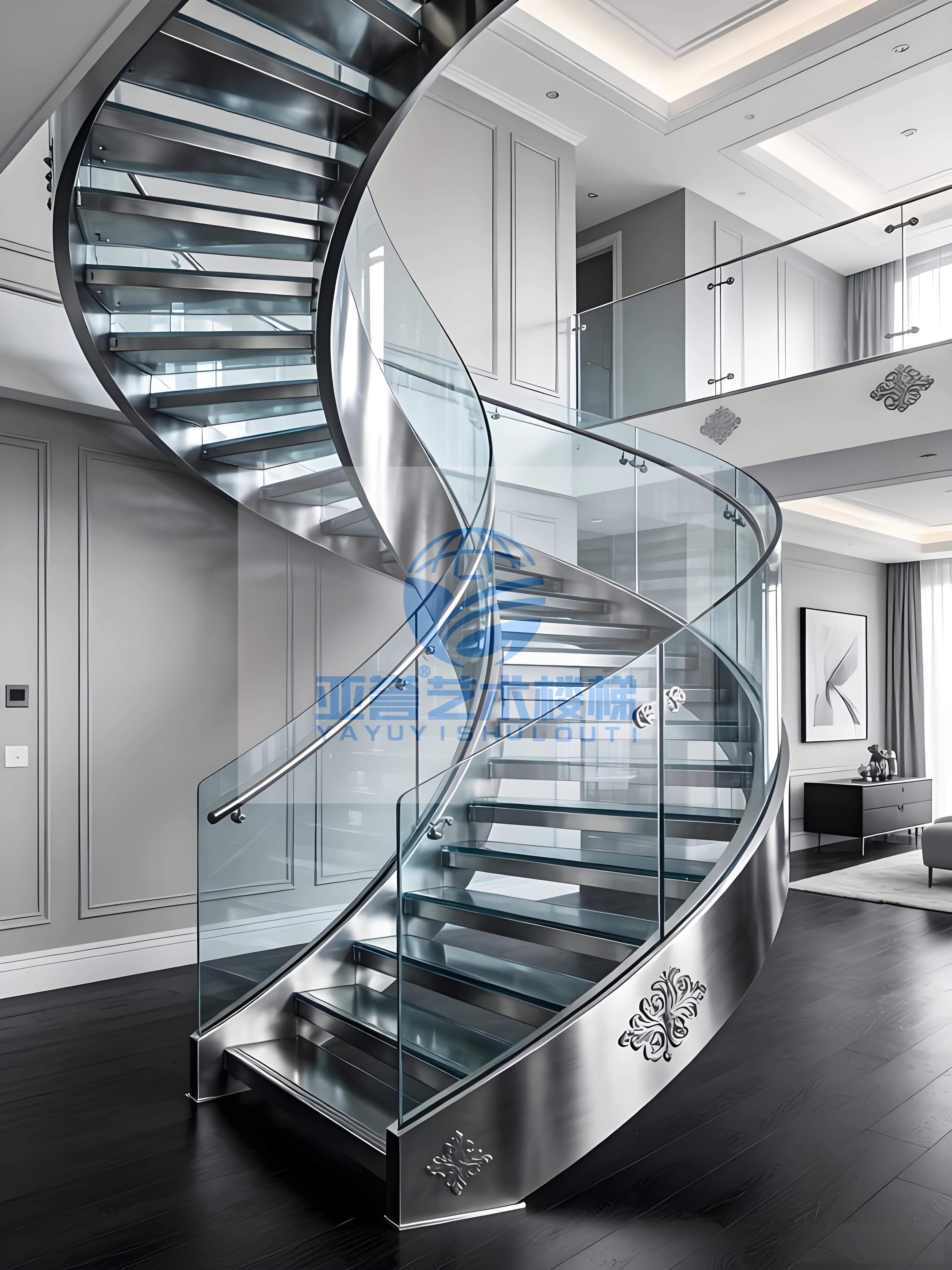旋转楼梯玻璃钢弯好还是热弯好?武汉亚誉艺术楼梯!