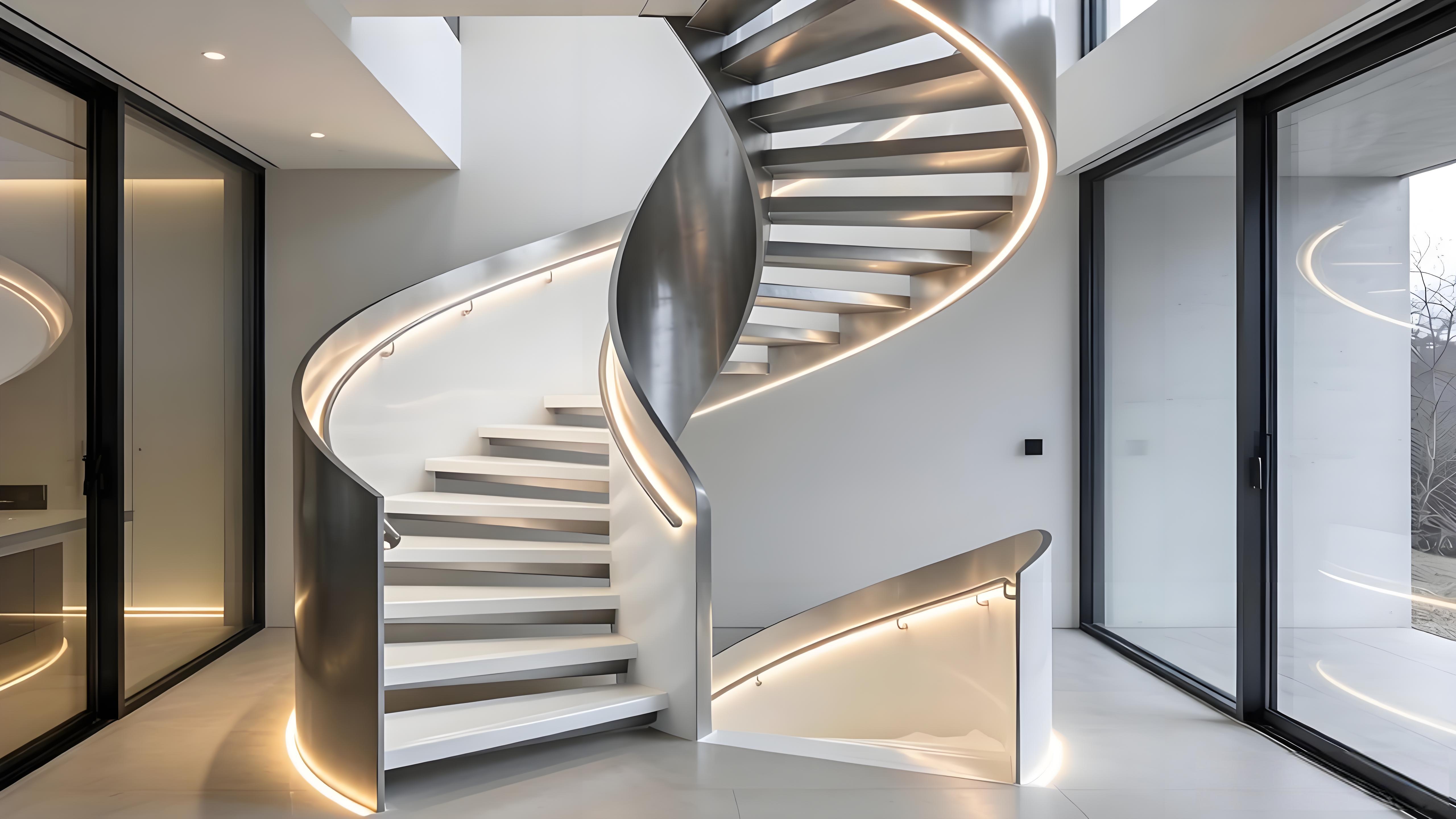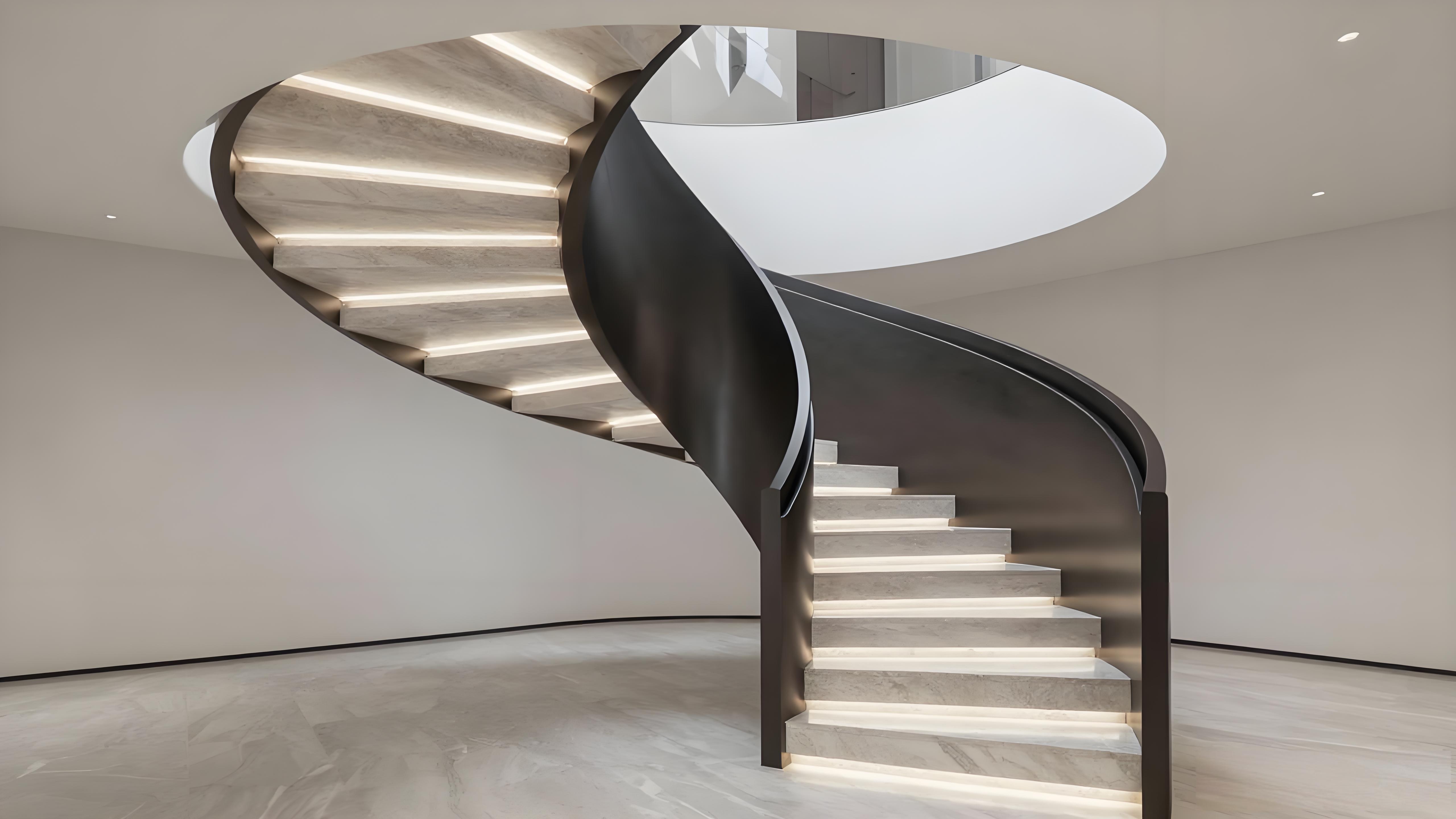 办公空间钢板旋转弧形楼梯应该怎么搭配颜色?武汉亚誉艺术楼梯!