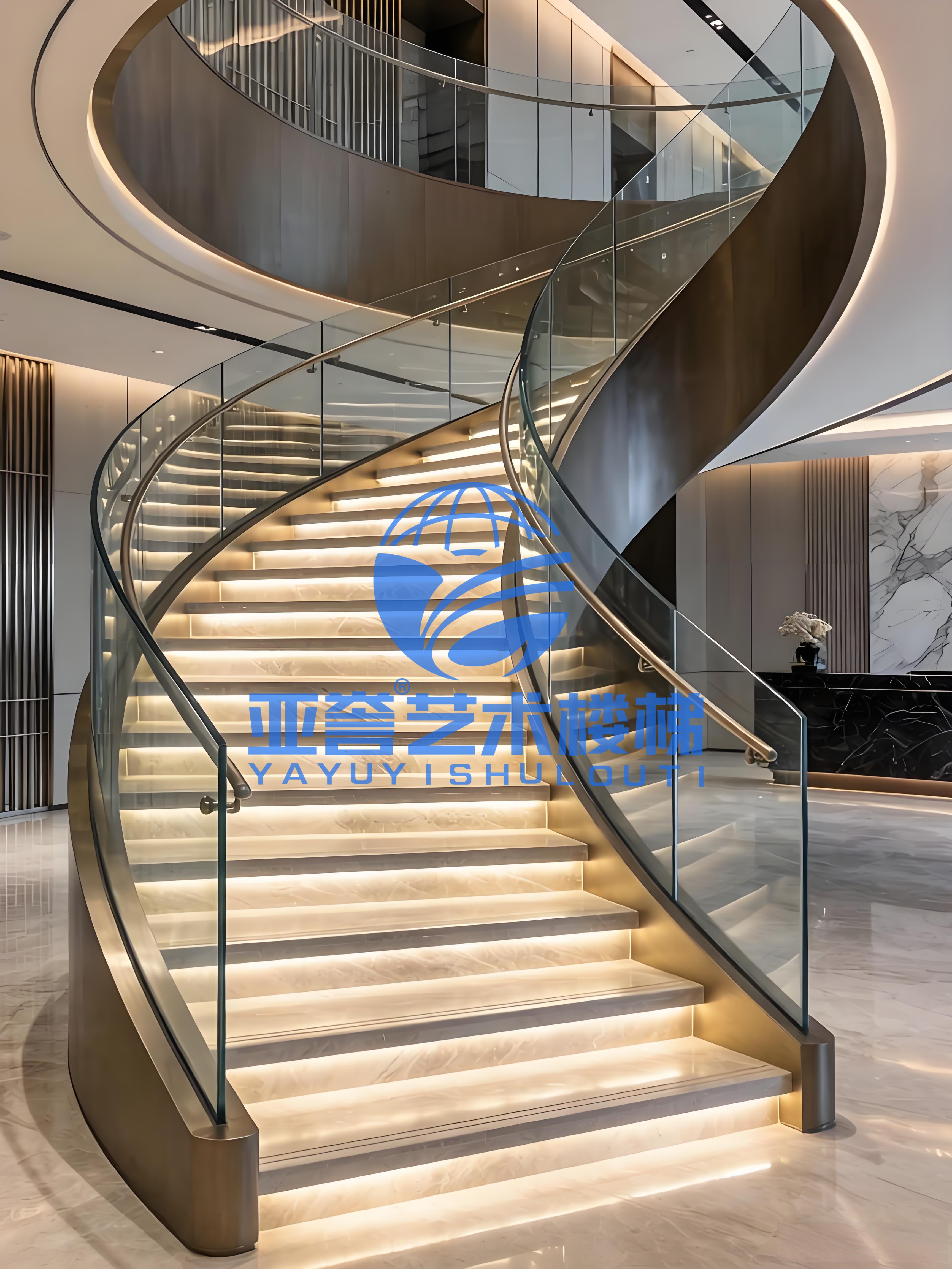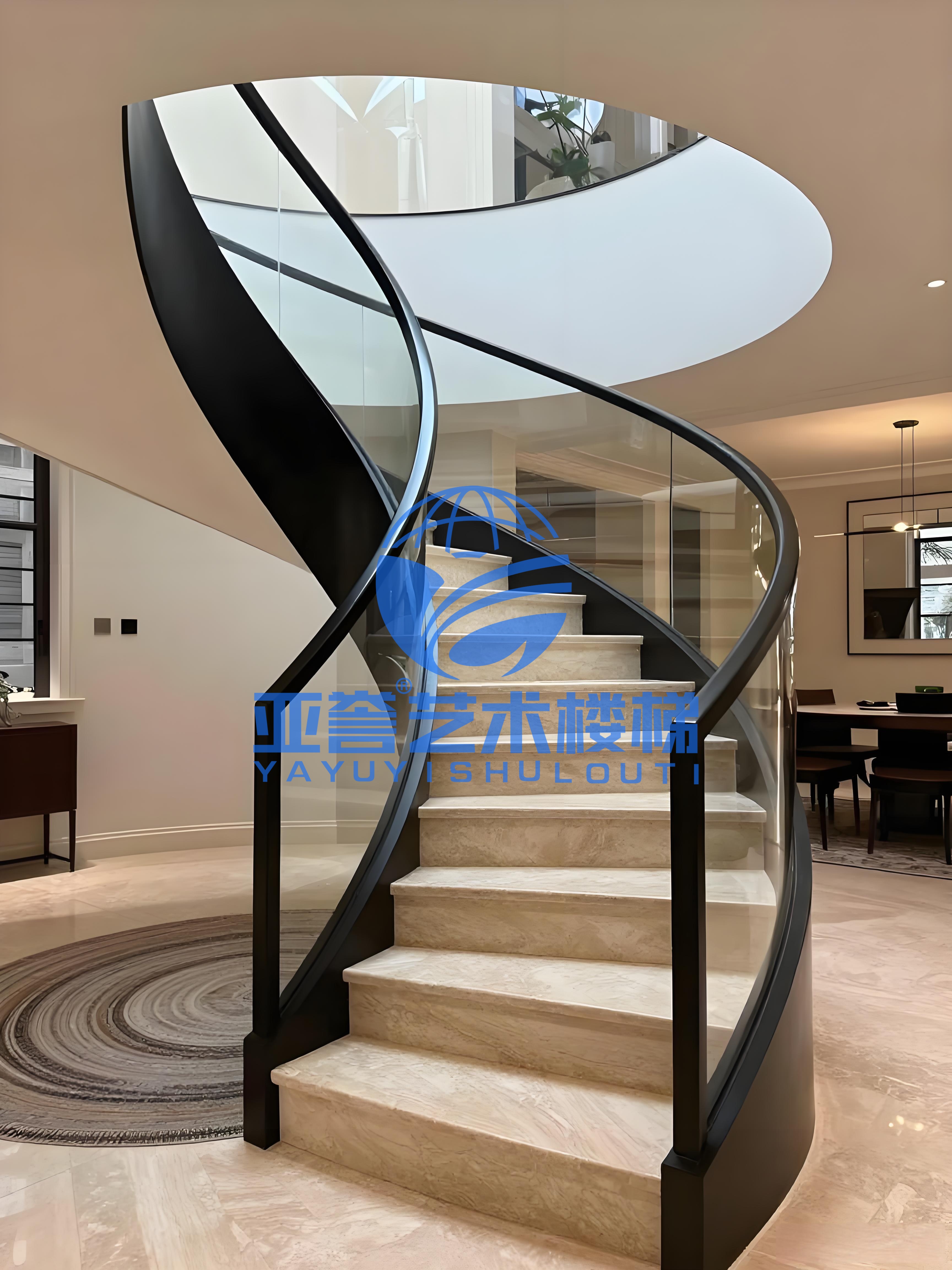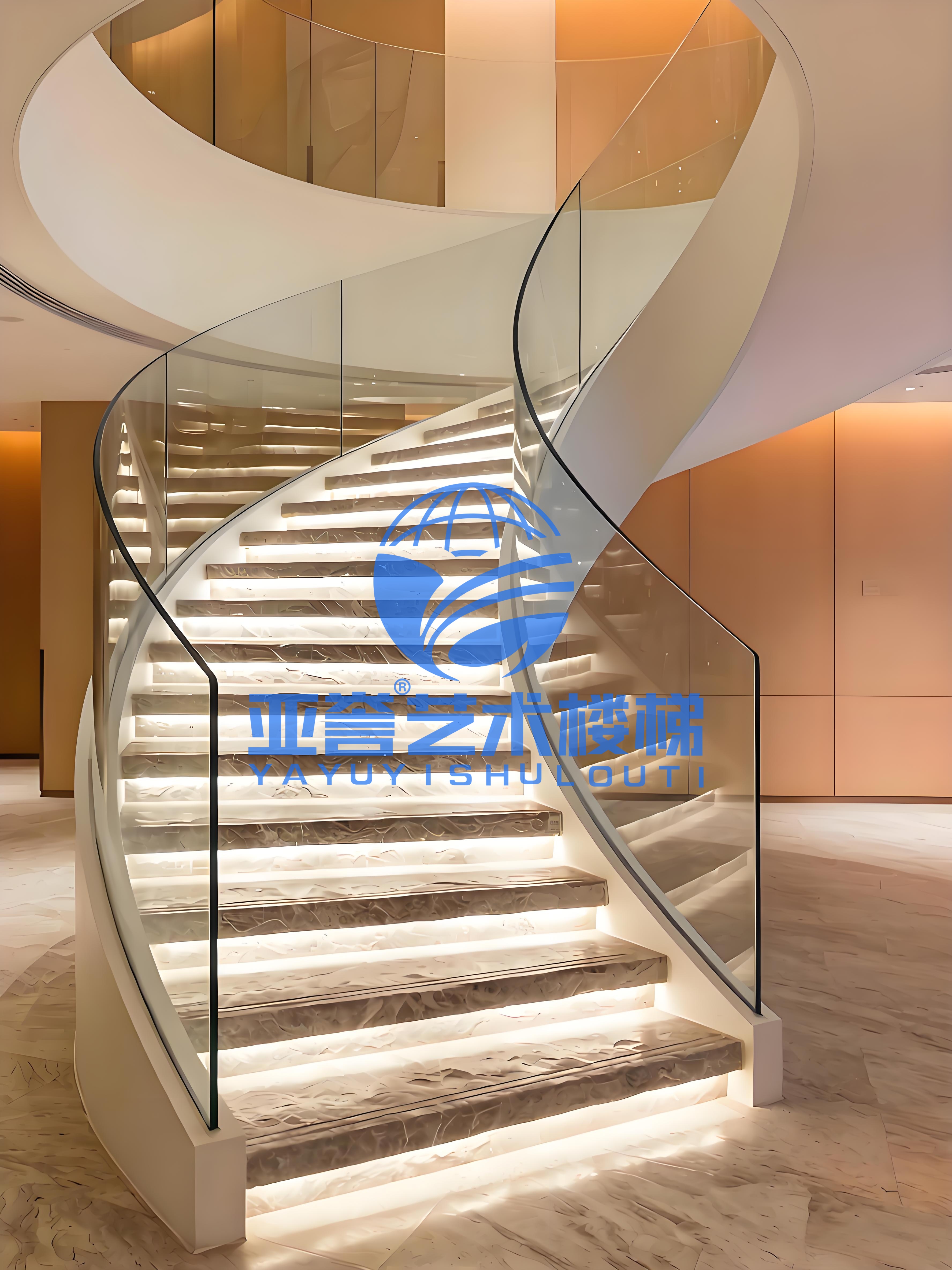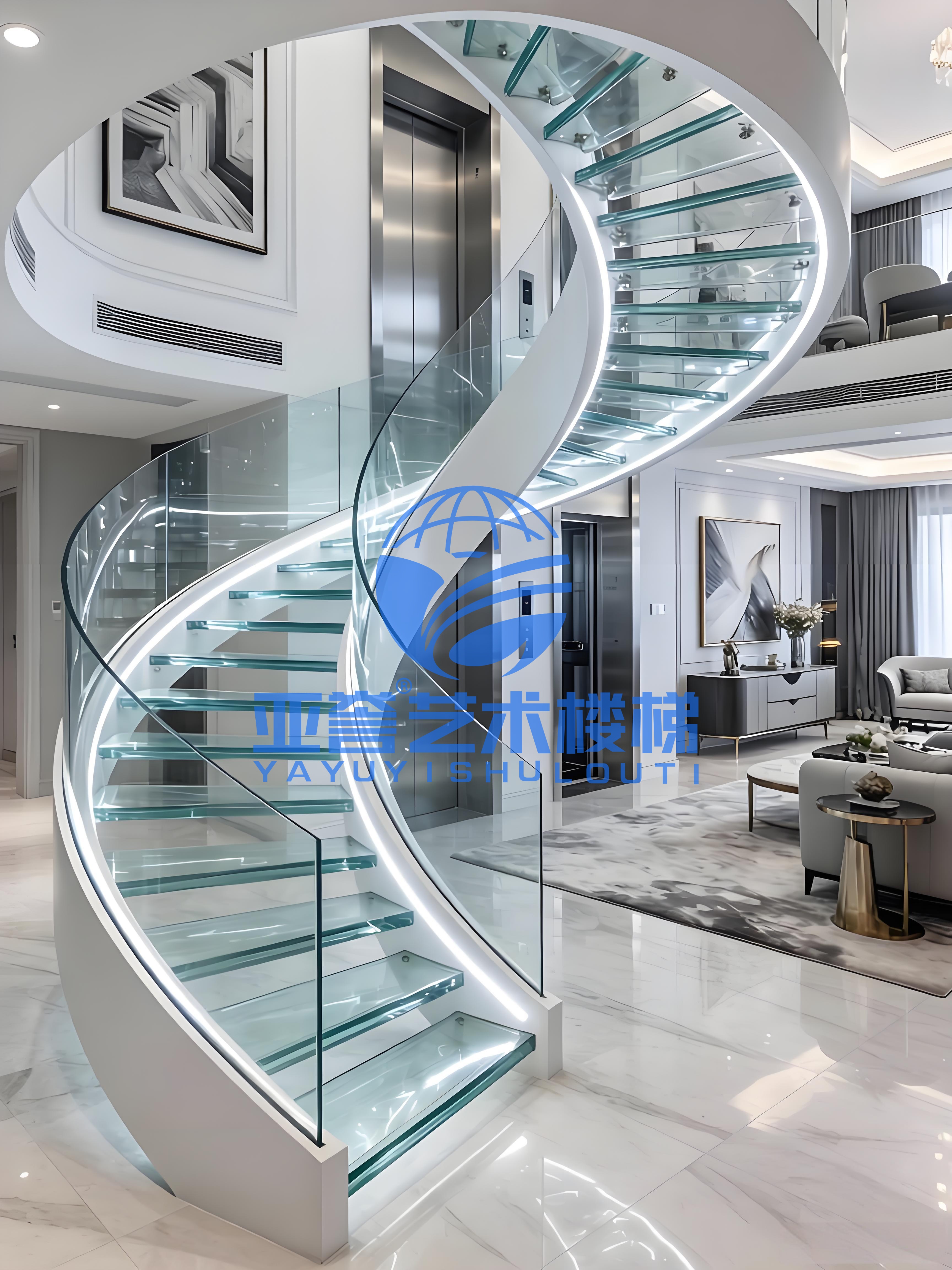 玻璃螺旋楼梯玻璃踏板多厚?武汉亚誉艺术楼梯钢旋转楼梯工厂