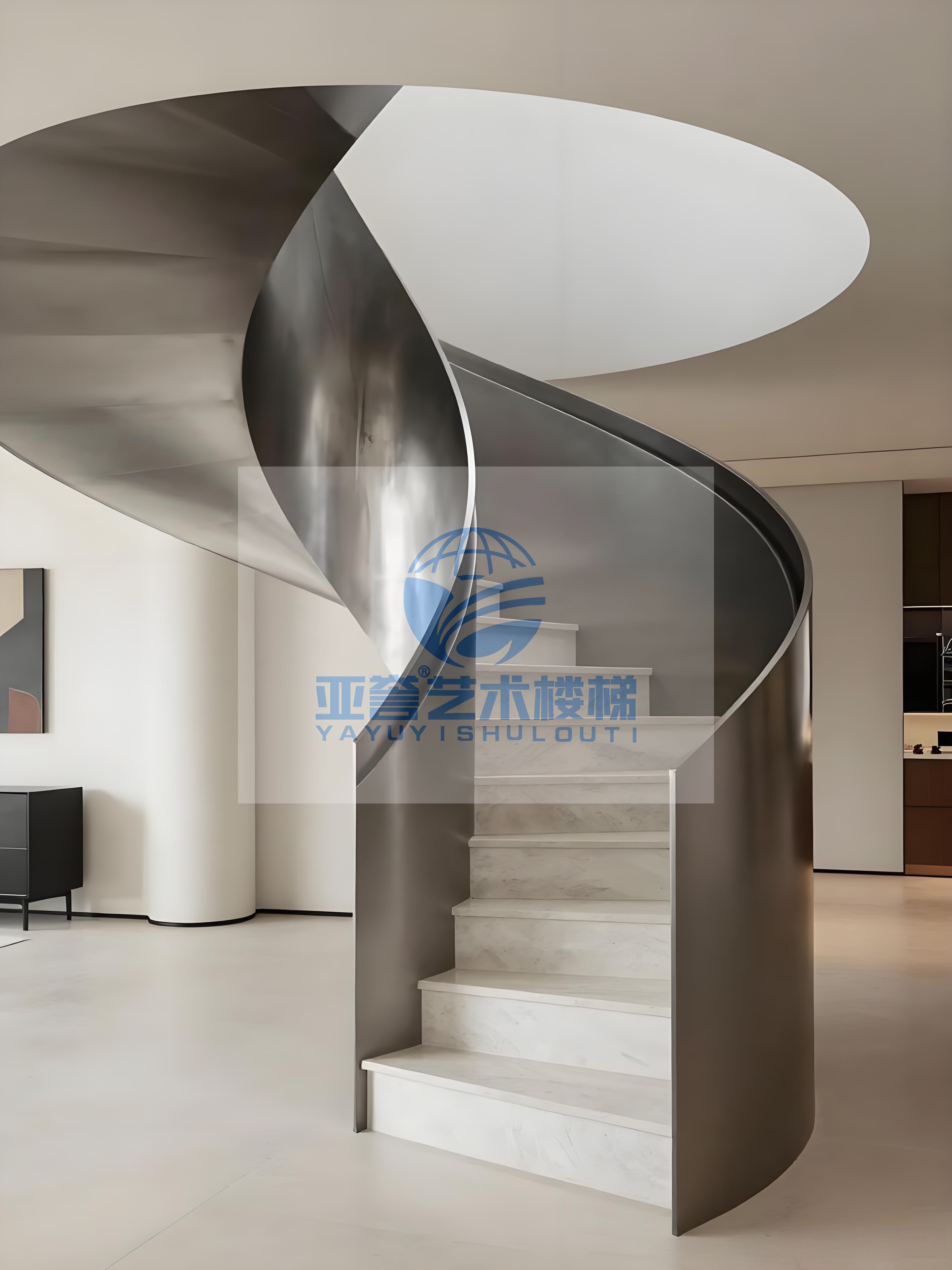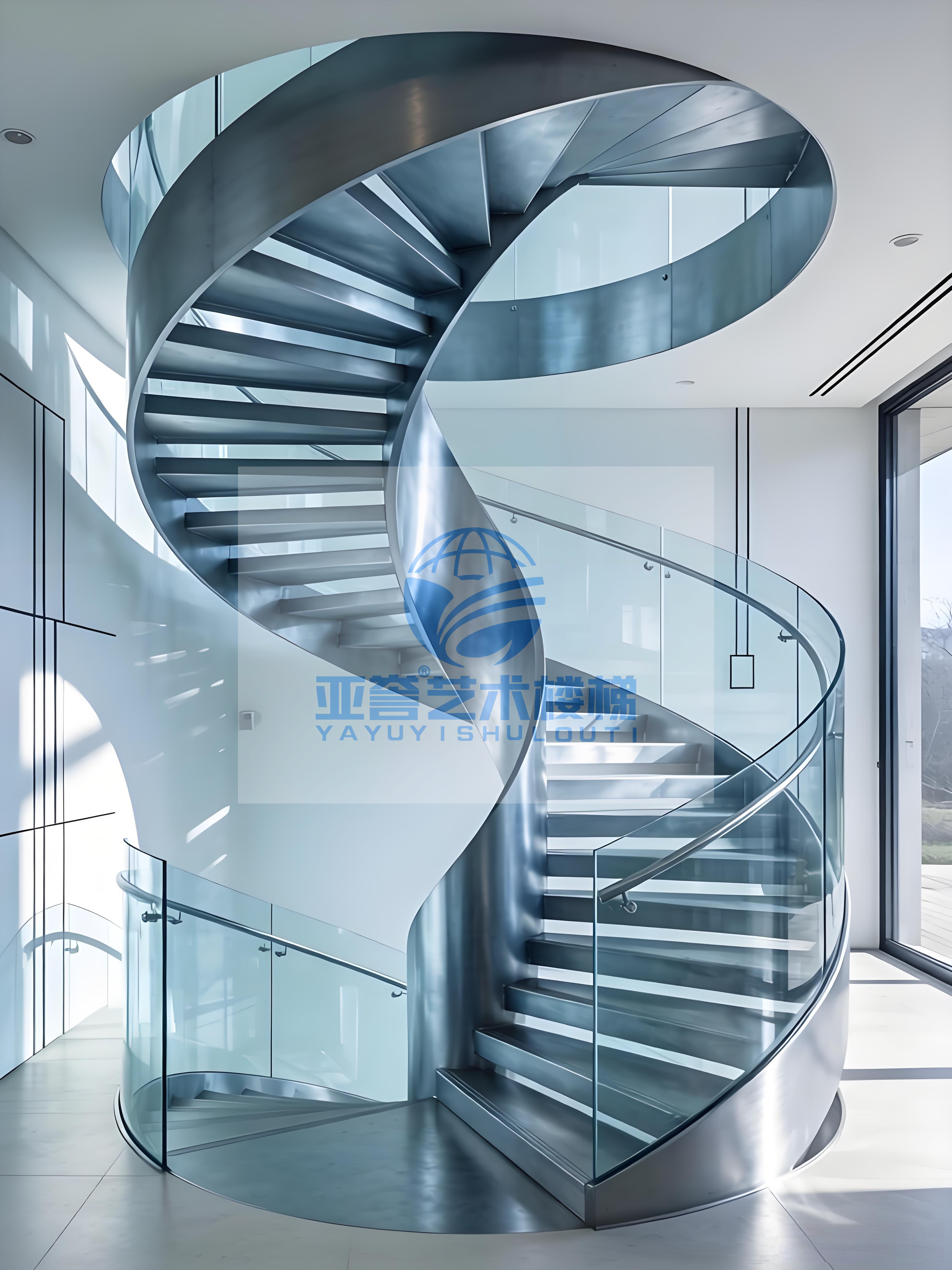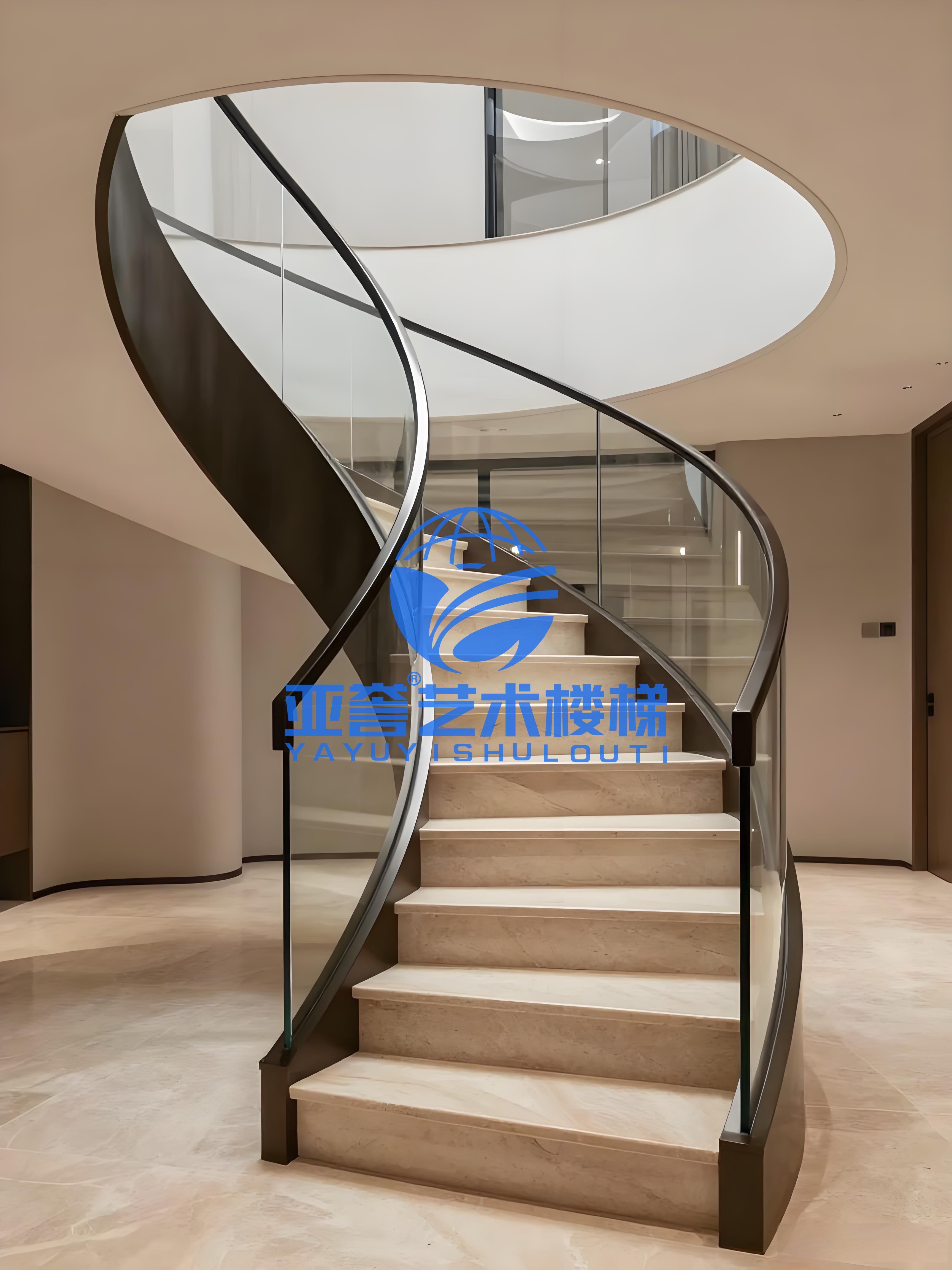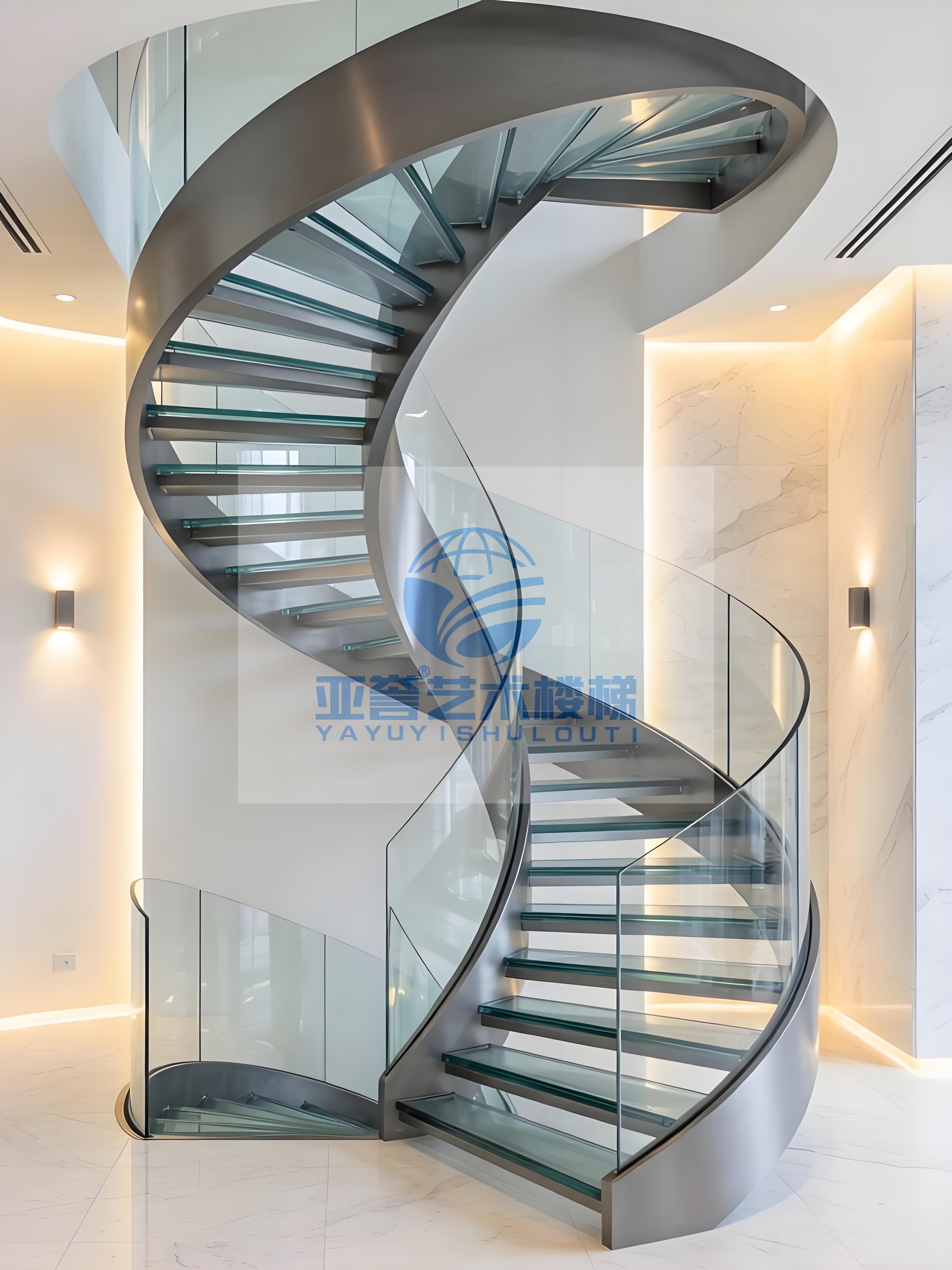 旋转楼梯玻璃钢弯好还是热弯好?武汉亚誉艺术楼梯!