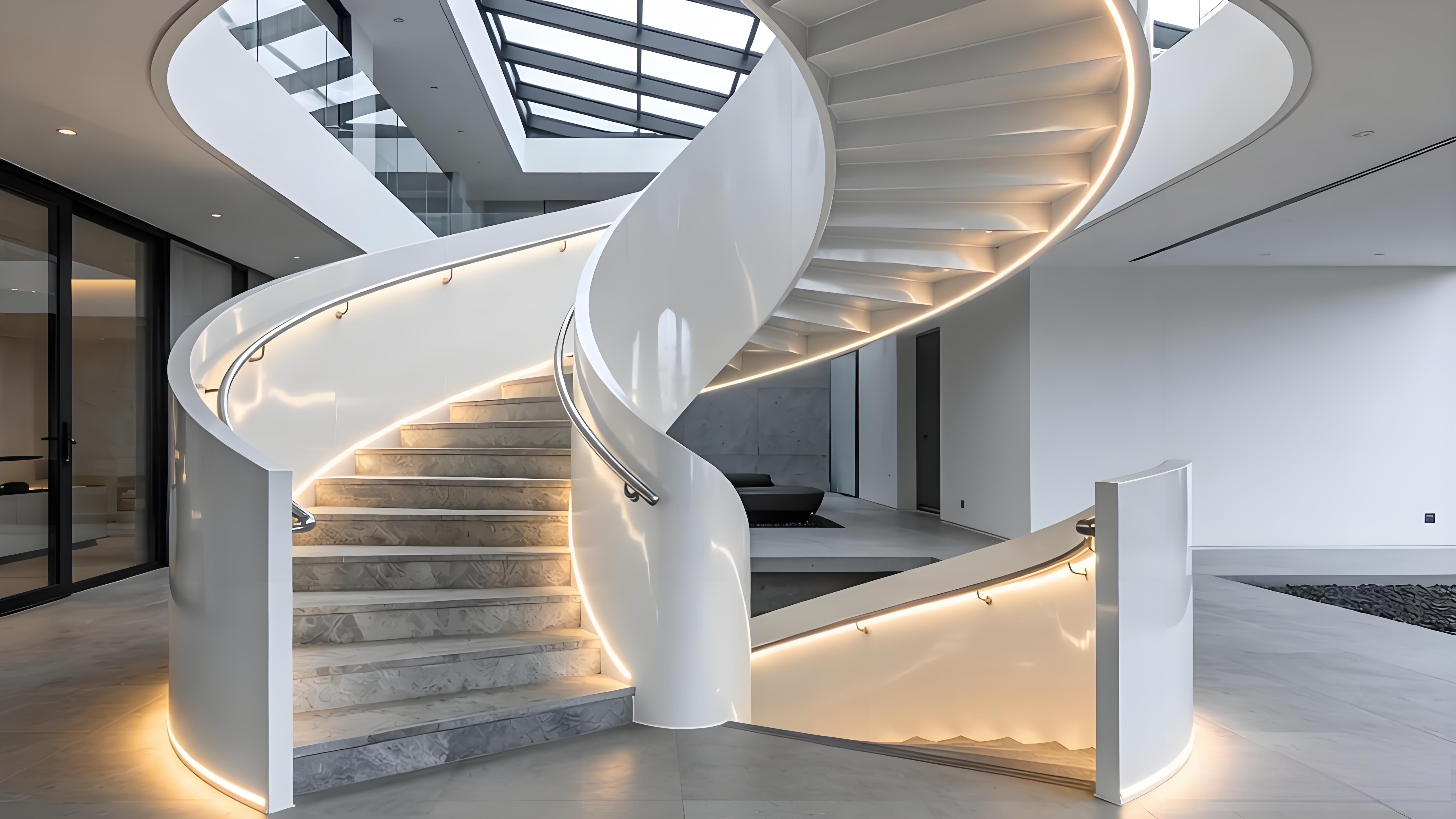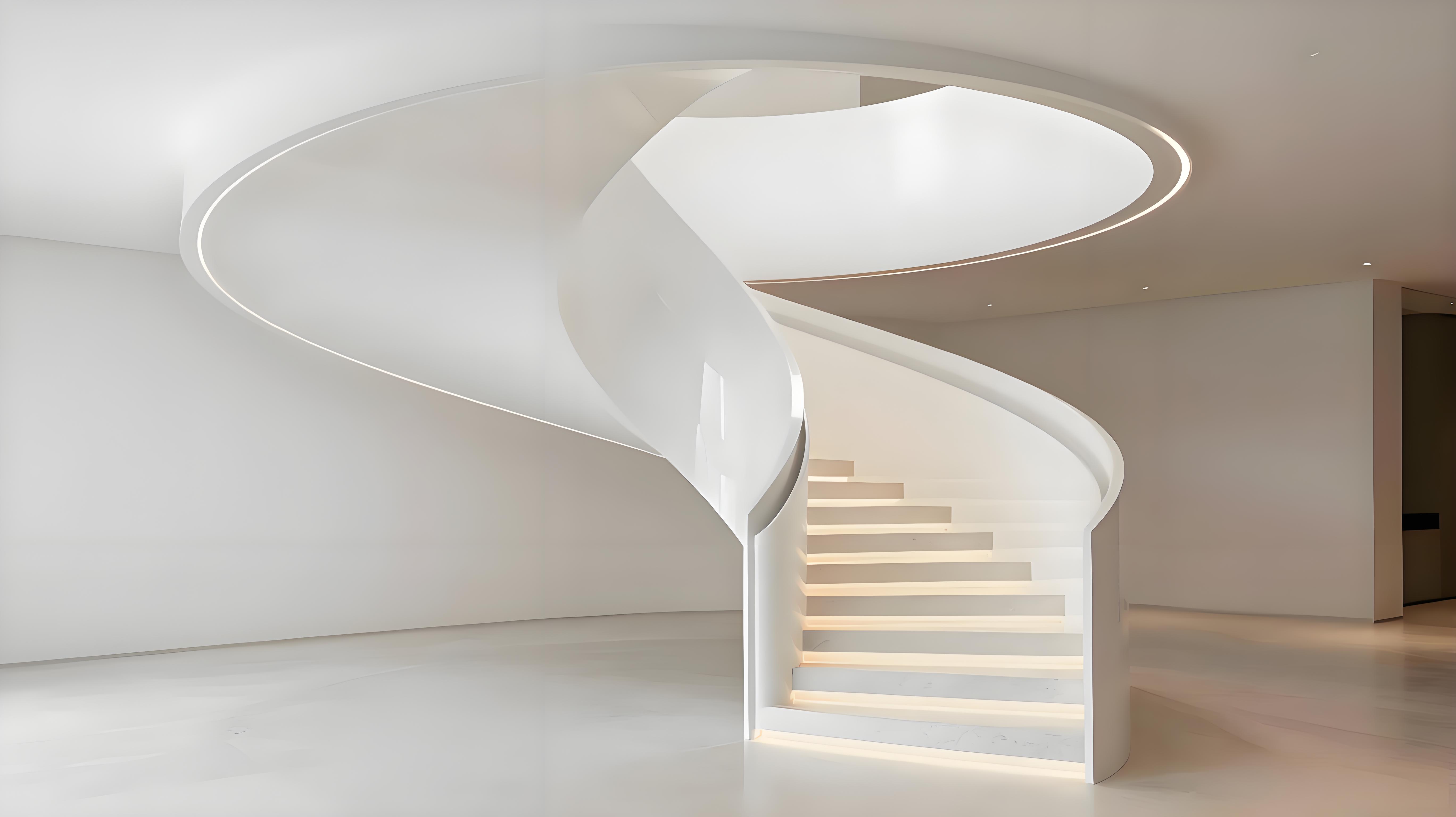 办公空间钢板旋转弧形楼梯应该怎么搭配颜色?武汉亚誉艺术楼梯!